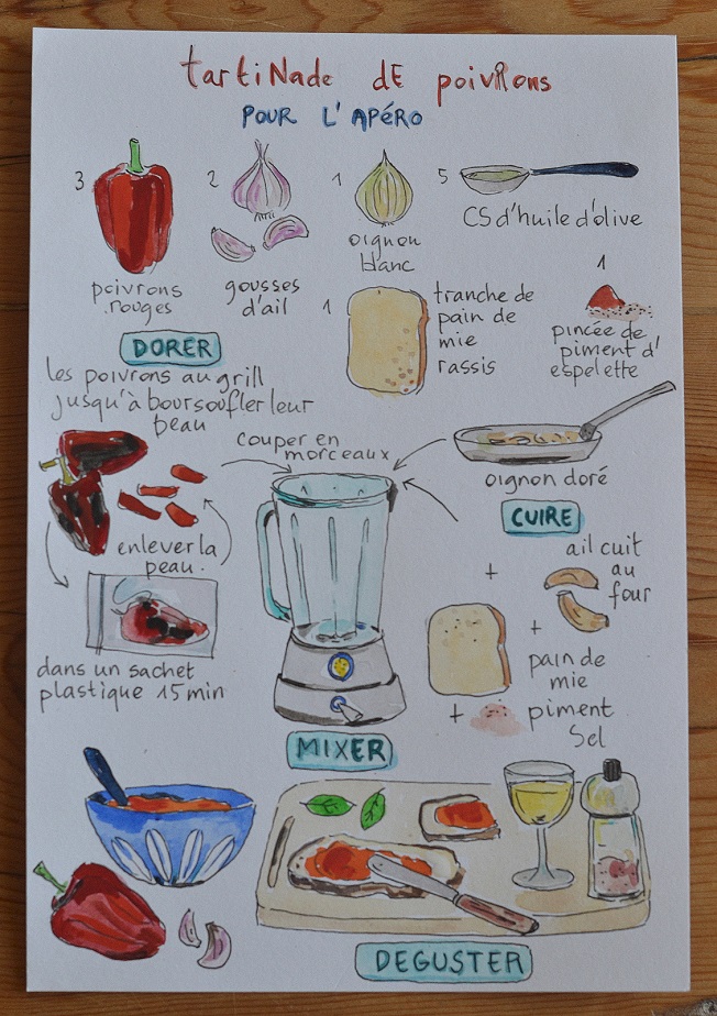 J’adore les recettes dessinées 😀 j’aime beaucoup le rendu, avec toutes ces couleurs !