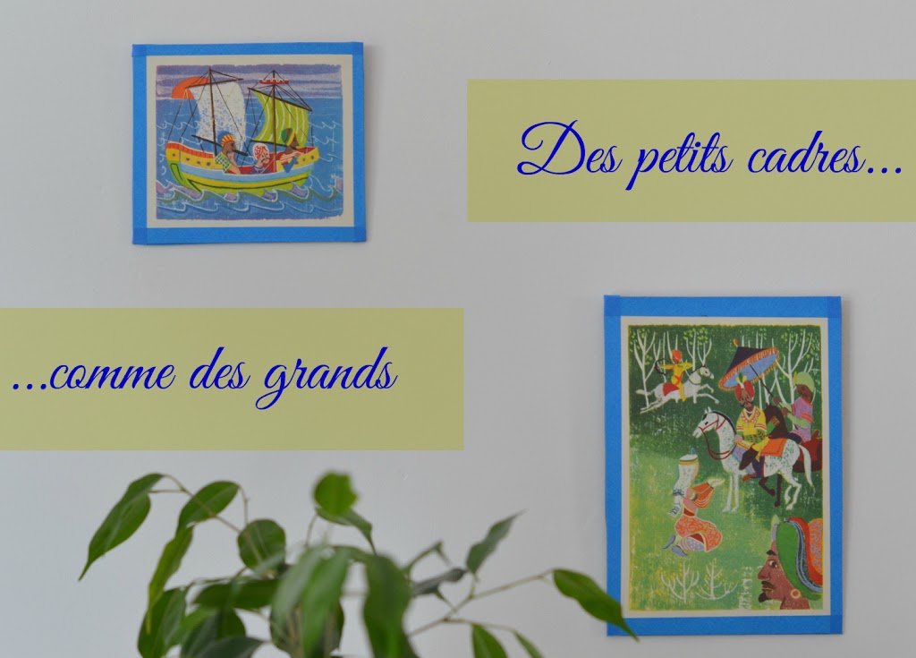 C’est comme cela que j’ai fait quelques jolis cadres en deux temps trois mouvements, qui, de loin, font la blague de l’encadrement…