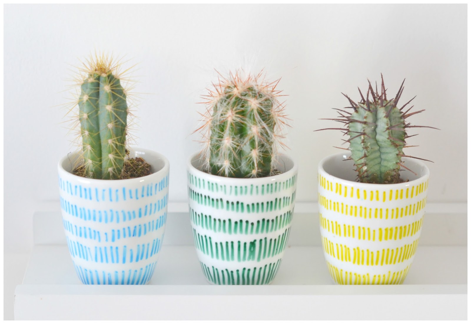 Mes petits cactus ont vite trouvé place sur une petite étagère blanche.