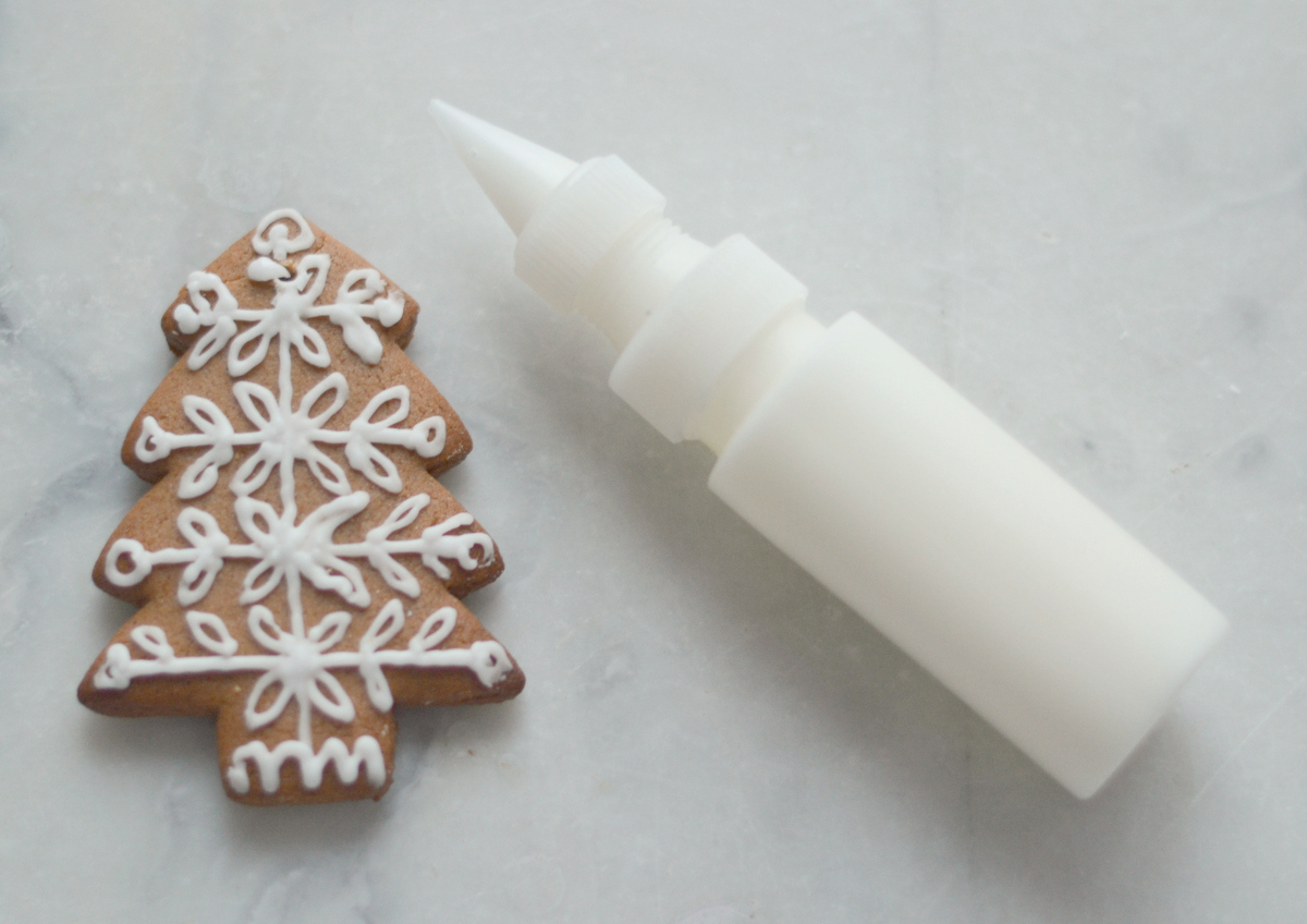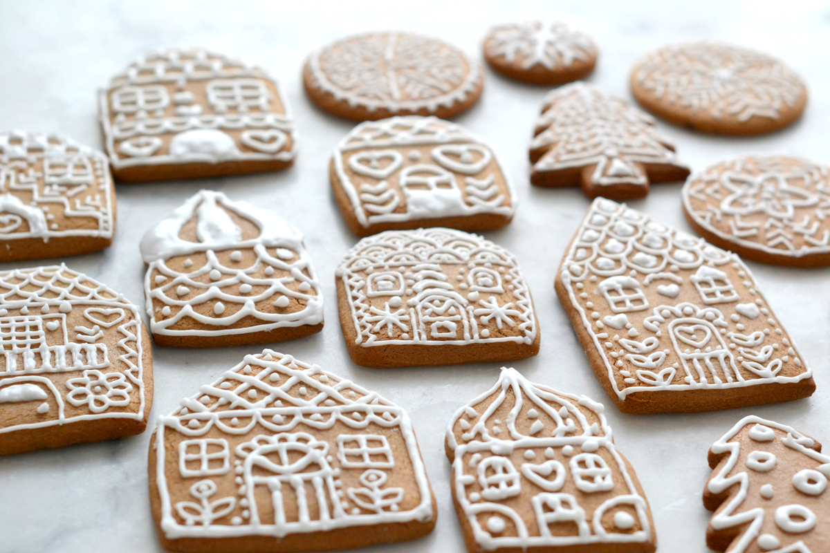 Marie Claire Idées de Noël, j'ai flashé sur les décorations en pain d'épices. J'adorais l'idée des petites maisons. J'ai donc fait ces décorations, mais je n'ai pas suivi du tout la recette dans le magasine. J'ai fait une recette maison, à base de divers recettes vues sur le net, je l'ai laissée reposer avant de l'étaler. J'ai directement découpé les formes dans la pâte crue. La cuisson est idéale au bout de 9-10 minutes. Comme les cookies, le gâteau est encore un peu mou à la sortie du four, mais prend une consistance parfaite en refroidissant sur une grille. J'avais en bouche le goût des pains d'épices de mon enfance. J'en ai fait pour les manger et les autres ont été décorés avec un glaçage maison (1 blanc d’œuf + sucre glace jusqu'à une consistance idéale pour réaliser les décors sur le gâteau).
