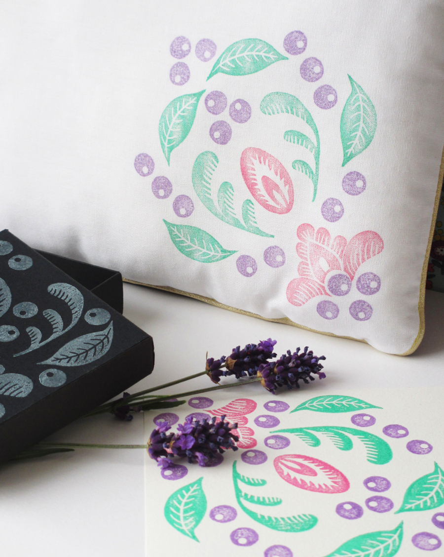 J’ai découvert cette technique via les « battles » thématiques auxquels tu participais aux côtés d’autres blogueuses, en flânant chez les unes et les autres au lancement de notre blog. J’ai été tellement enthousiasmée par vos réalisations que j’ai voulu tester rapidement. Je trouve que c’est à la portée de tout le monde, du petit tampon tout simple au plus sophistiqué, on peut se faire plaisir. Les tampons se déclinent dans une grande diversité selon les encres et les supports, c’est sans limite. Une fois qu’on a commencé, on a envie de tout graver et c’est très communicatif ! J’aime aussi le fait que ça convoque le dessin, là encore du plus simpliste au plus détaillé. J’admire beaucoup ton travail, j’ai été très marquée par tes « impressions botaniques » qui me plaisaient énormément.
