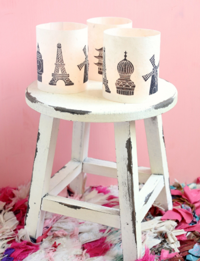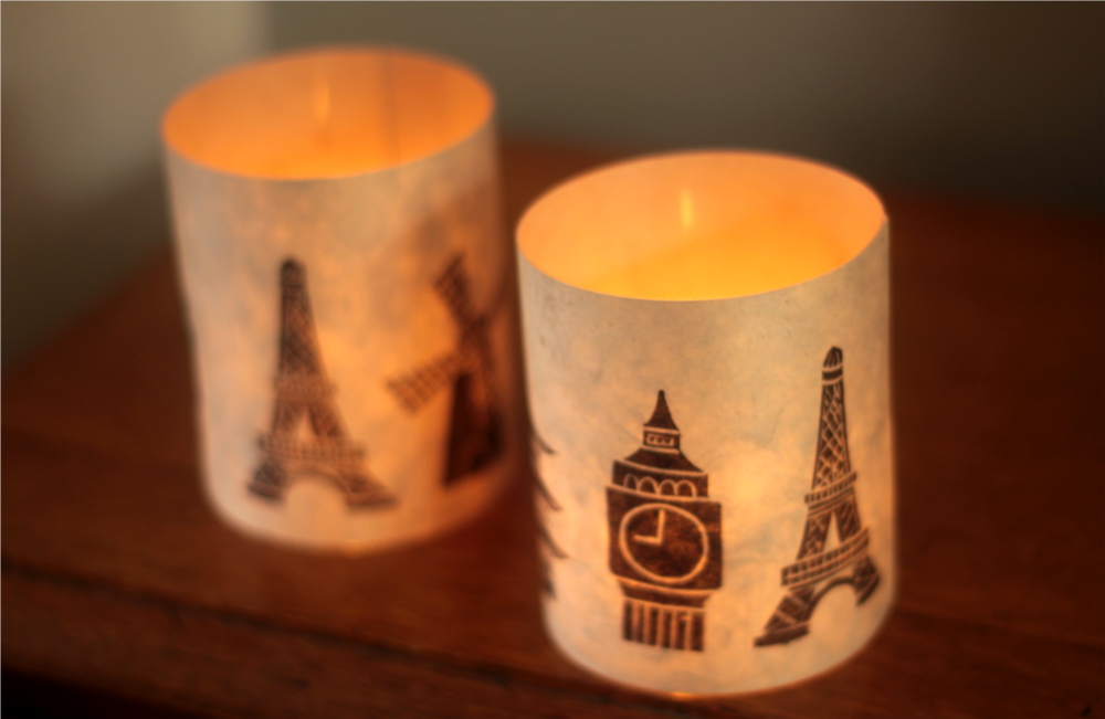 Marie a choisi d’essayer de réaliser les « photophores tour du monde ». En effet les silhouettes de monuments représentatifs de différents pays font le tour des photophores.