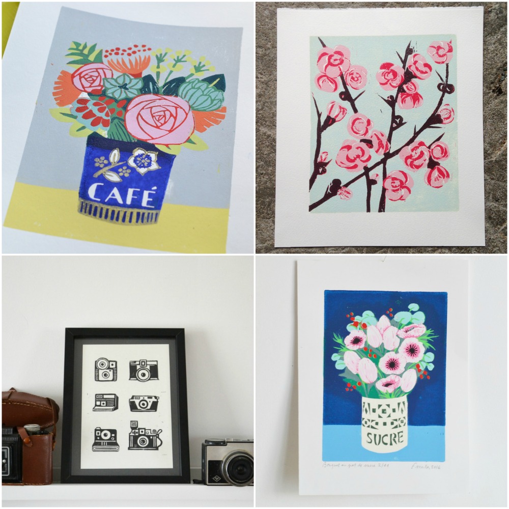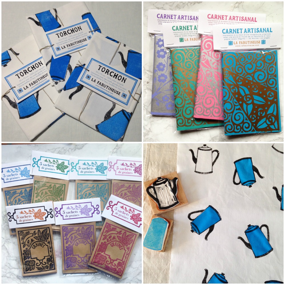 Il y aura également mes gravures, des carnets réalisés à partir de linogravures, les petits sachets pour conserver les graines, les sachets de tisanes du jardin et tous les tampons gravés à la main…