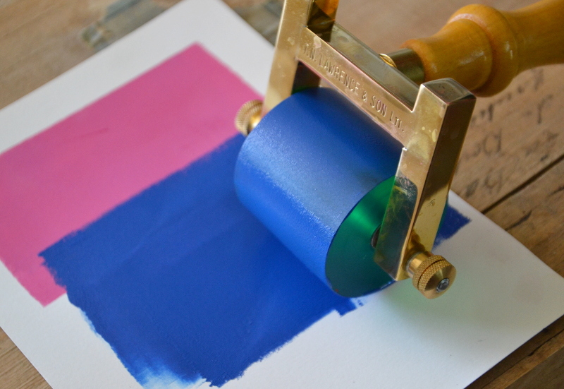 Pour les petites zones en revanche, le tout petit rouleau était nécessaire, car la presse ne pardonne pas les taches d’encre en dehors des zones à imprimer, tout se voit ensuite sur le papier. Les petits ratages doivent être nettoyés au chiffon avant impression, sous risque d’avoir une impression trop salie. Des minuscules traits peuvent passer, c’est quand même un travail artisanal ! Mais trop endommage le résultat final.
