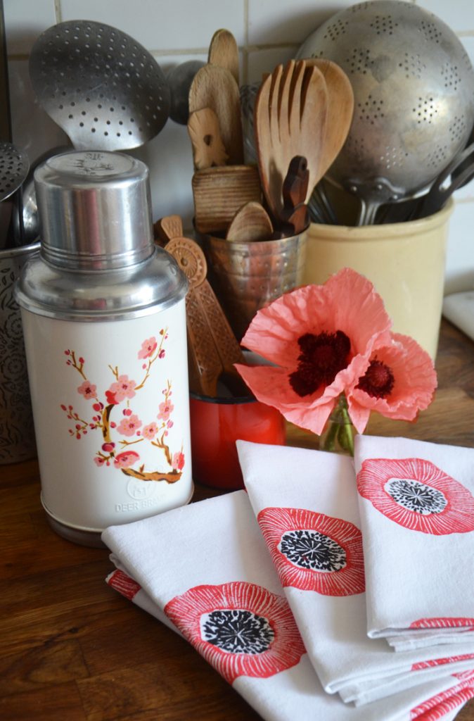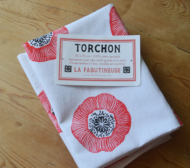 Les impressions sont réalisées avec des encres non toxiques, qui ont été fixées à chaud et peuvent même tenir des lavages à haute température, j’ai testé pour vous. J’utilise mes torchons depuis longtemps, ils ne bougent pas.