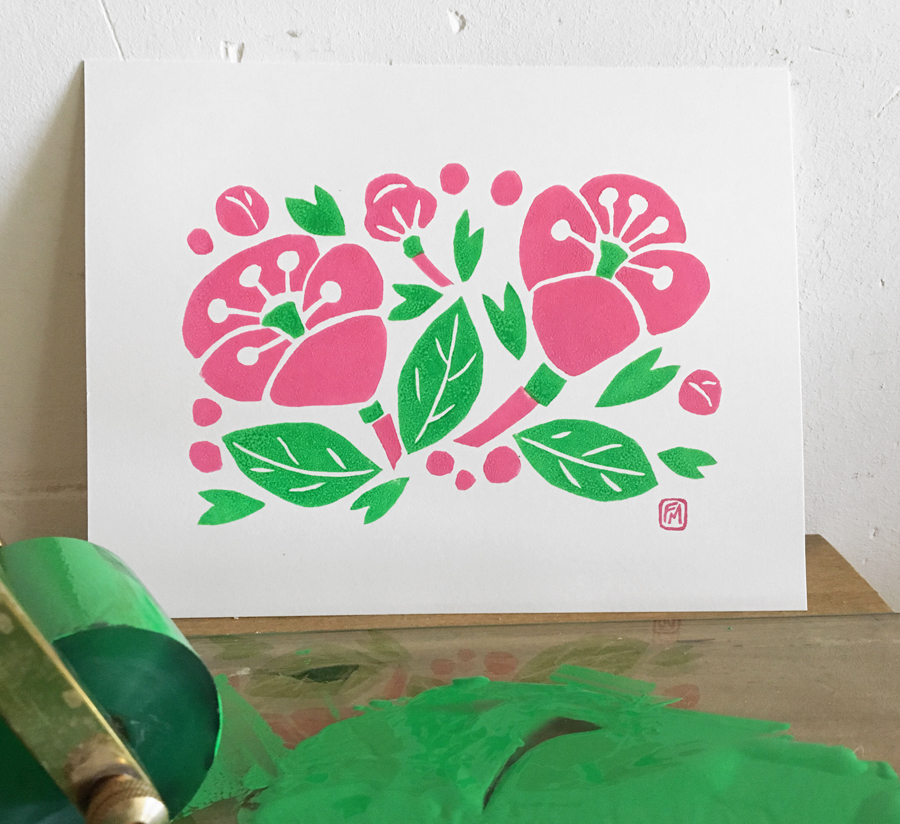 Voici de nouvelles gravures florales qui vont très vite venir en boutique. J’ai volontairement souhaité des graphismes simples pour mettre en valeur les couleurs vives.