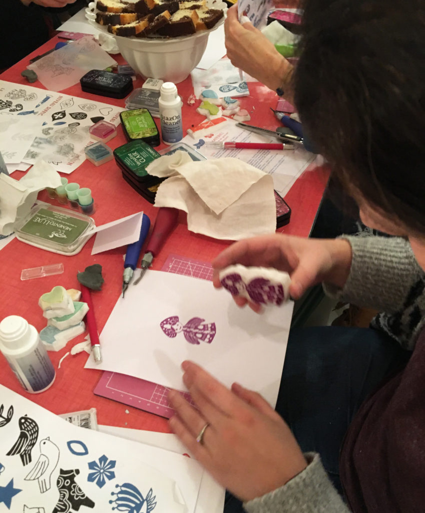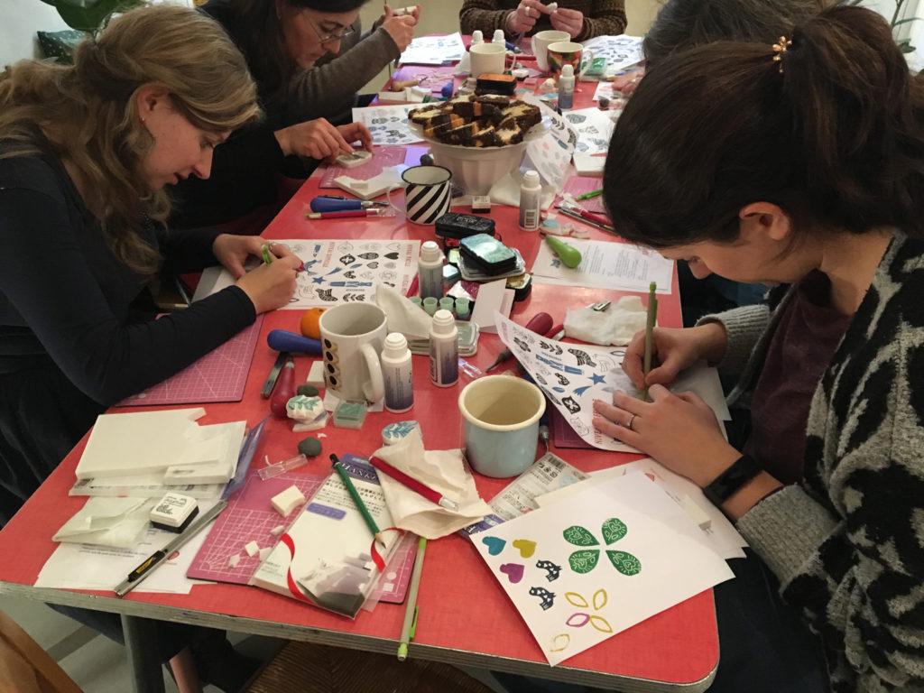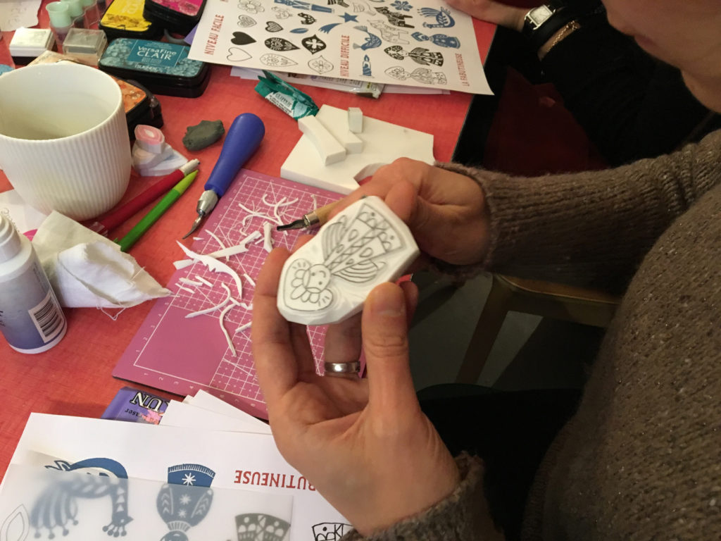 J’ai proposé dernièrement, un atelier de gravure de tampons dans la très chouette boutique Klin d’oeil dans le 11ème à Paris.
