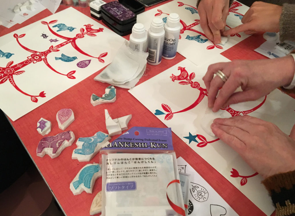 Nous avons gravé dans les gommes japonaises Hinodewashi, avec qui ces ateliers se font en partenariat.