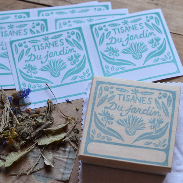 Des Jolis Rangements Ré-édition de motif « Étiquette de thé feuilles » 7.00€ Ré-édition de motif « Bocal » 7.00€ Ré-édition de motif « Crayon » 6.00€ Ré-édition de motif « Etiquette d’école » 8.00€ Tampon « TISANES Du jardin » 45.00€ Tampon gravé à la main « Confiture de » 17.00€
