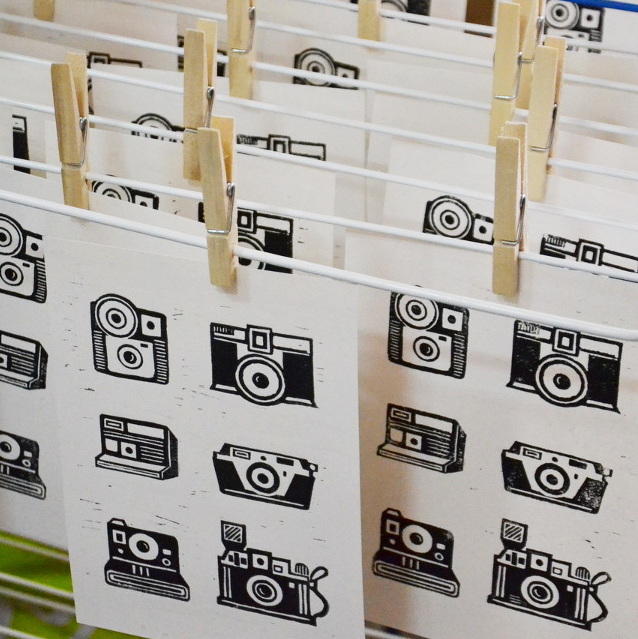 Les motifs sont gravés dans une plaque de linoléum, puis encrés avec une encre à l’eau et imprimés à la main avec une petite presse. Chaque tirage est unique et peut différer légèrement du modèle présenté.