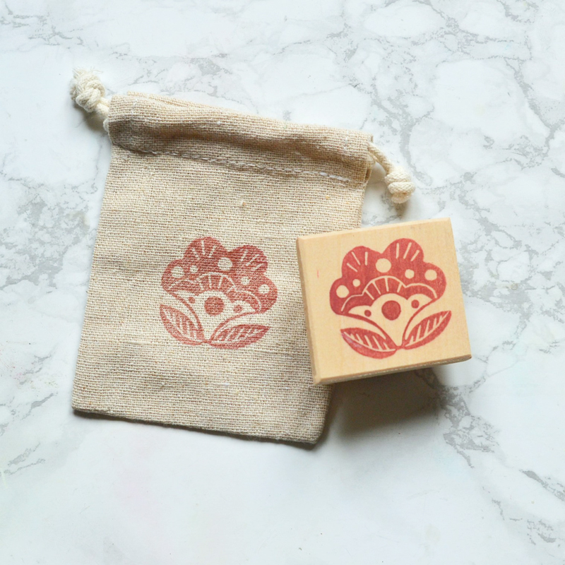 Le tampon est fait à partir d’un dessin original, que j’ai gravé dans de la gomme japonaise, monté sur du bois que j’ai scié et poncé moi-même dans l’atelier. le bois est verni avec un vernis mat à l’eau pour une bonne protection. Ce tampon est entièrement artisanal, pour le protéger je vous l’envoie dans un petit pochon de coton biologique, imprimé avec une encre textile.