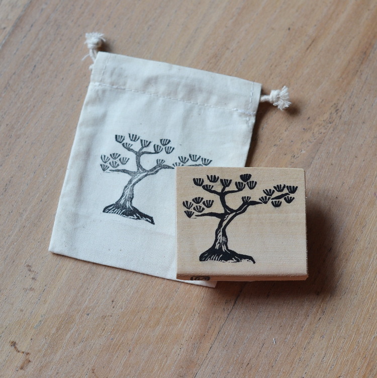 Tampon faisant partie d’une série sur le thème des motifs japonais : pin japonais, arbre typique des paysages orientaux dans les estampes japonaises