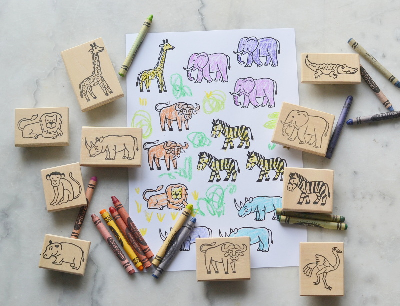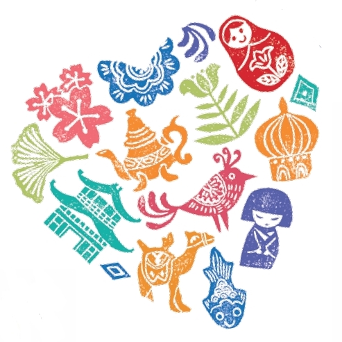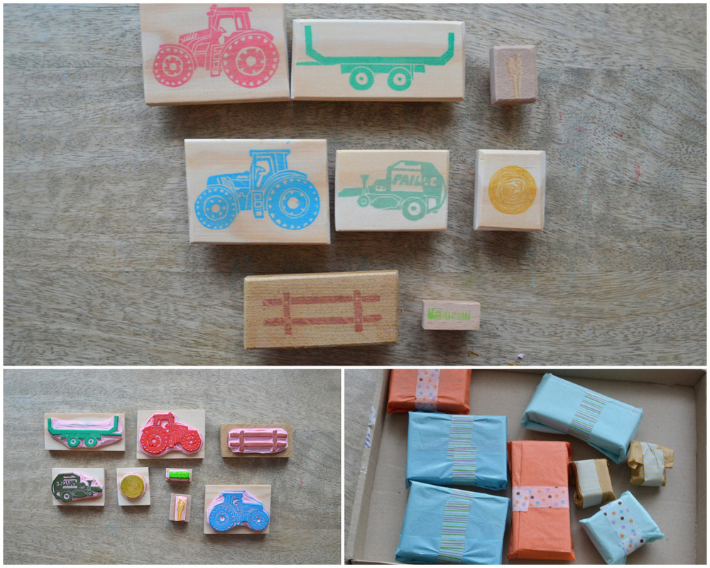 Les tampons "à colorier" utilisés en ateliers lors de l'exposition "Les esprits l'or et le chaman"
