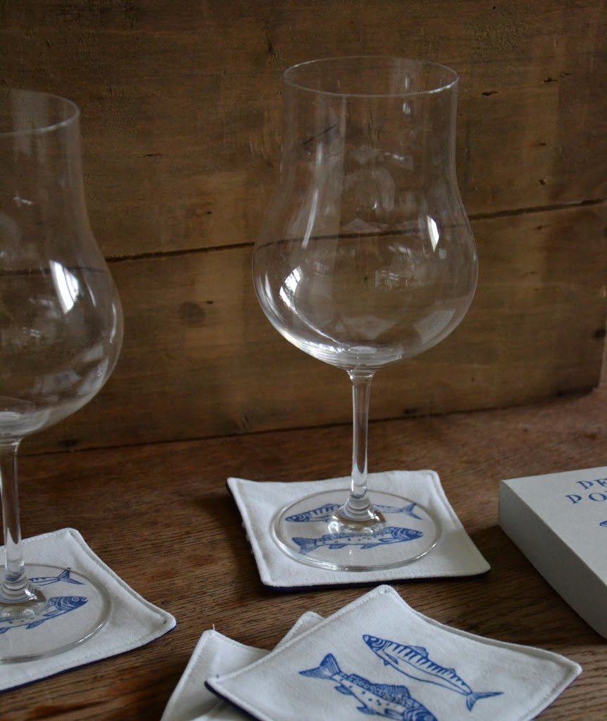 Et puis, pour bien vous gaver de poissons hé hé, voici de jolis sous-verres, il n’y en a que 1 lot de 6 dans la boutique, je peux en faire d’autres, mais je n’ai pas encore eu le temps. La semaine dernière et une partie du week end, j’étais couchée avec un vilain rhube.
