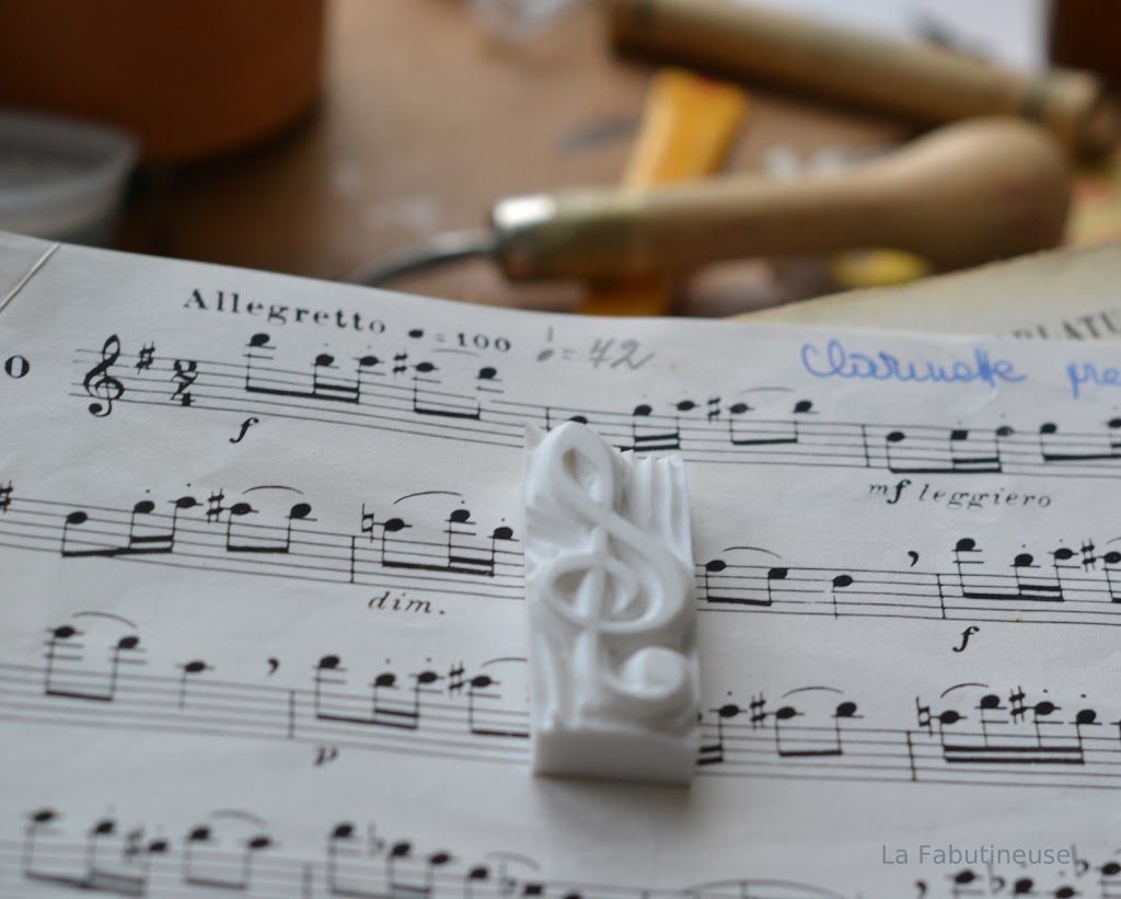 - un morceau de gomme et un motif : vous trouverez facilement des clefs de sol à reproduire.